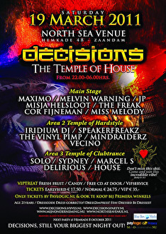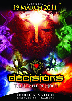 Maar gaan we eerst nog ons feest : Decisions The Temple of House beleven die 19maart plaats zal vinden in de North Sea Venue (Hemkade)