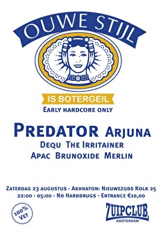 Om deze nieuwe locatie in stijl in te wijden is er gekozen om twee grootheden uit de early rave hun ding te laten doen. Vanuit Cenobite records komt Arjuna langs met zijn sound, en vanuit Ruffneck records zal Predator de nodige klappers draaien. Samen met residents Dequ, The Irritainer, Brunoxide, Apac en Merlin belooft dit weer een knaller van een editie te worden.