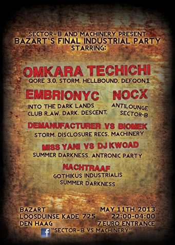 Bazart is closing down, so The Hague's top industrial parties have joined forces for one final industrial night that will knock you off the ground!