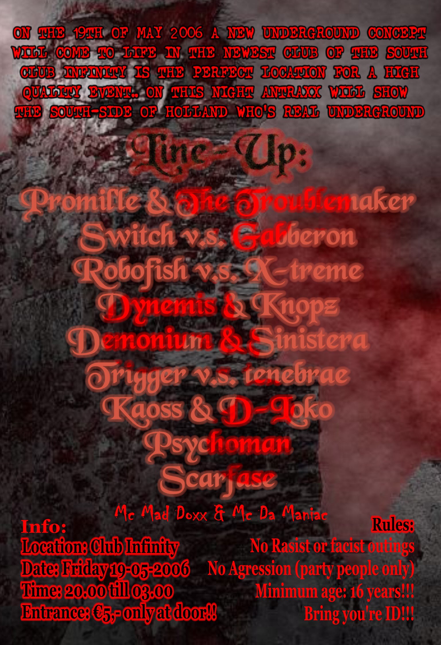 On the 19the of may 2006, AntraXx presents you a new concept in the newest clud of the south : club Infinity .