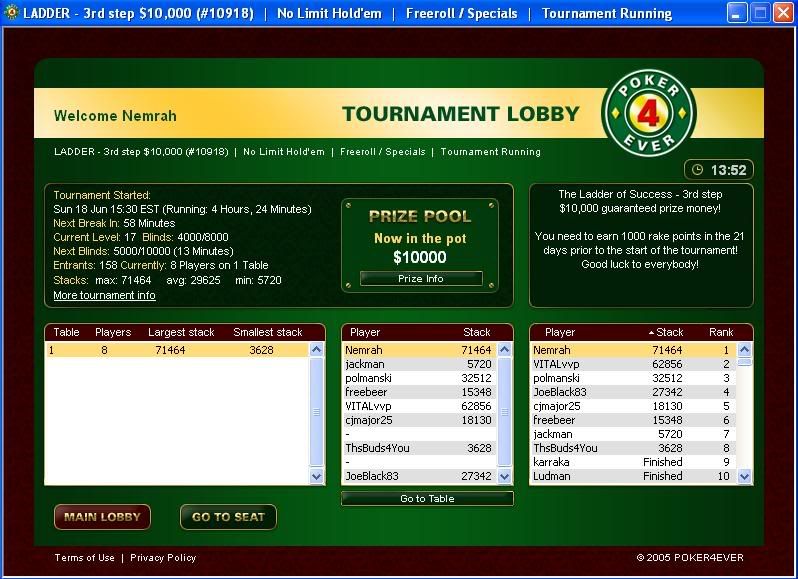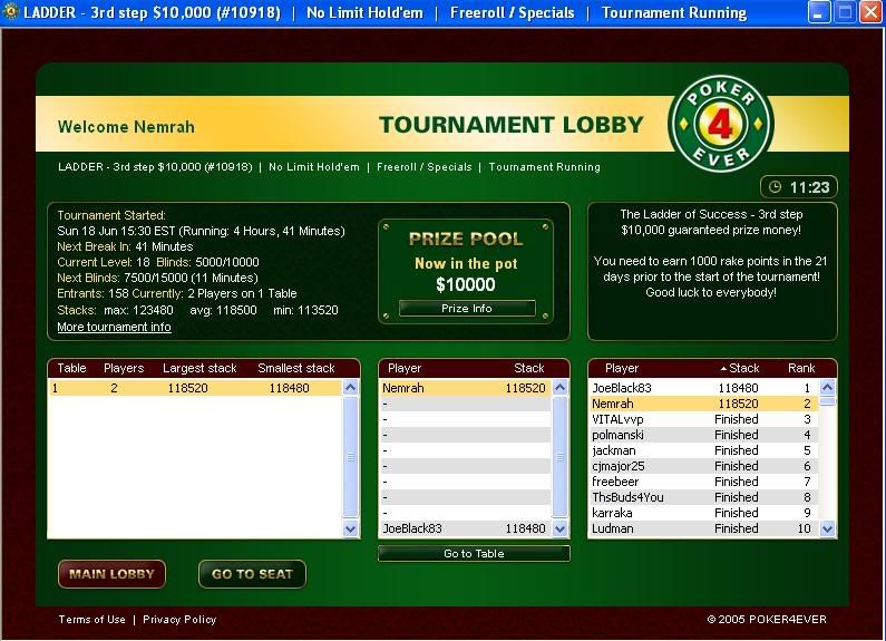 Toernooi van giister ben ik 15de geworden :( $50 gewonnen. beetje jammer als je kijkt dat de top 10 al $200 ving grrrrrrrr