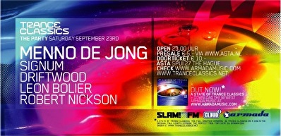 Armada Music organiseert op 23/9 weer een leuk trancefeestje in de AstA van Den Haag, nl. Trance Classics - The Party: